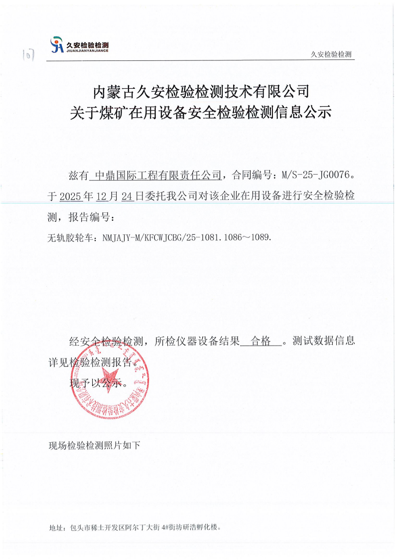 107.中鼎国际工程有限责任公司煤矿在用设备安全检验检测信息公示