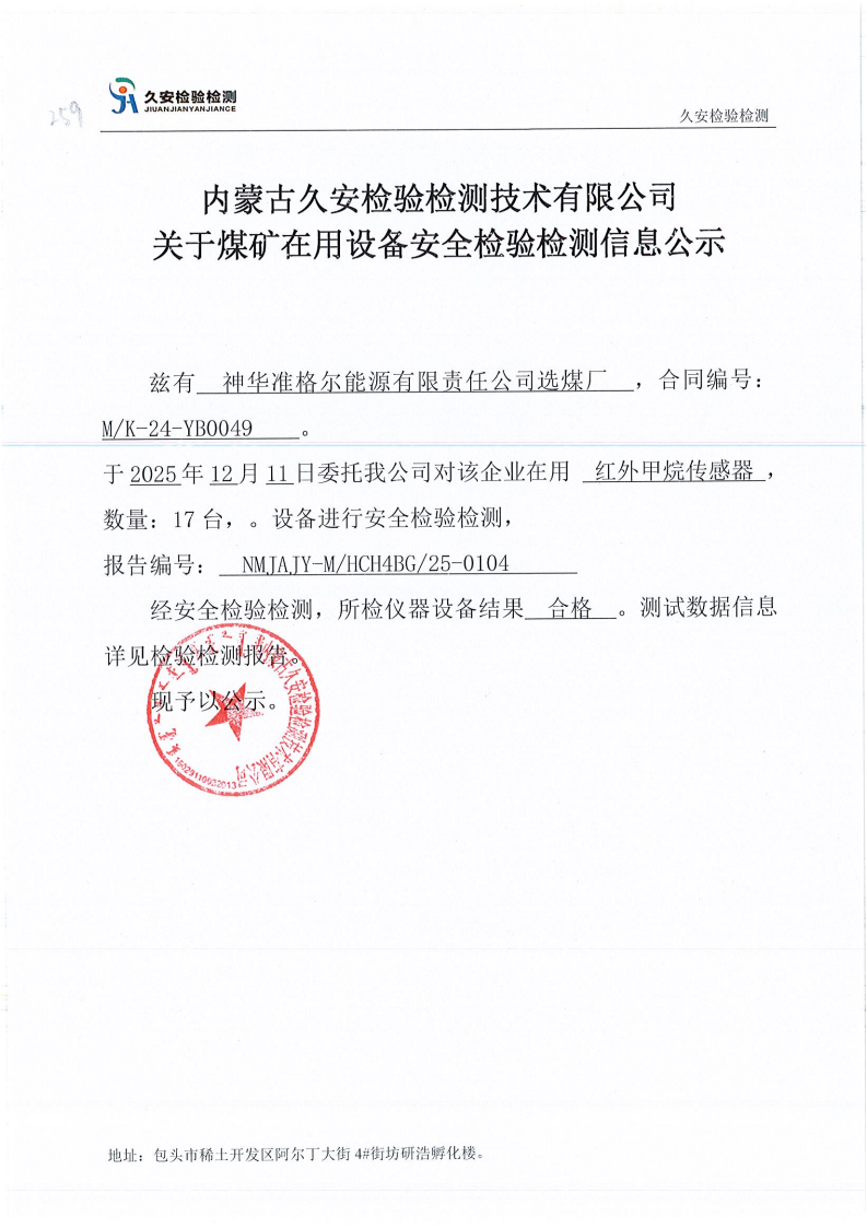 259.神华准格尔能源有限责任公司选煤厂煤矿在用设备安全检验检测信息公示
