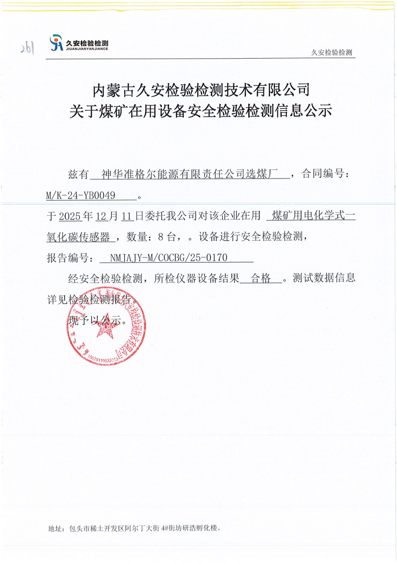261.神华准格尔能源有限责任公司选煤厂煤矿在用设备安全检验检测信息公示