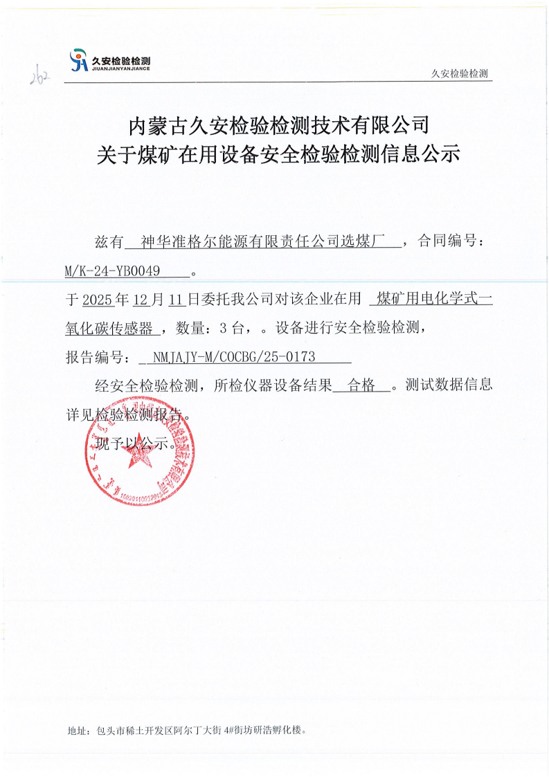 262.神华准格尔能源有限责任公司选煤厂煤矿在用设备安全检验检测信息公示
