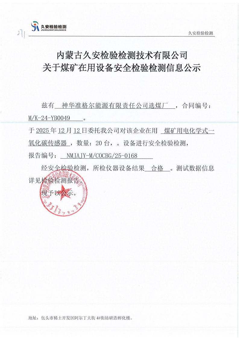 271.神华准格尔能源有限责任公司选煤厂煤矿在用设备安全检验检测信息公示