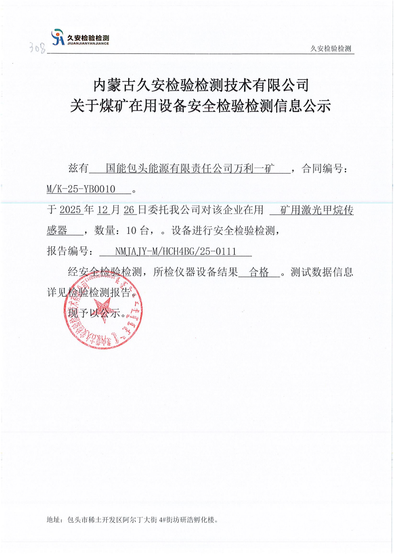 308.国能包头能源有限责任公司万利一矿煤矿在用设备安全检验检测信息公示