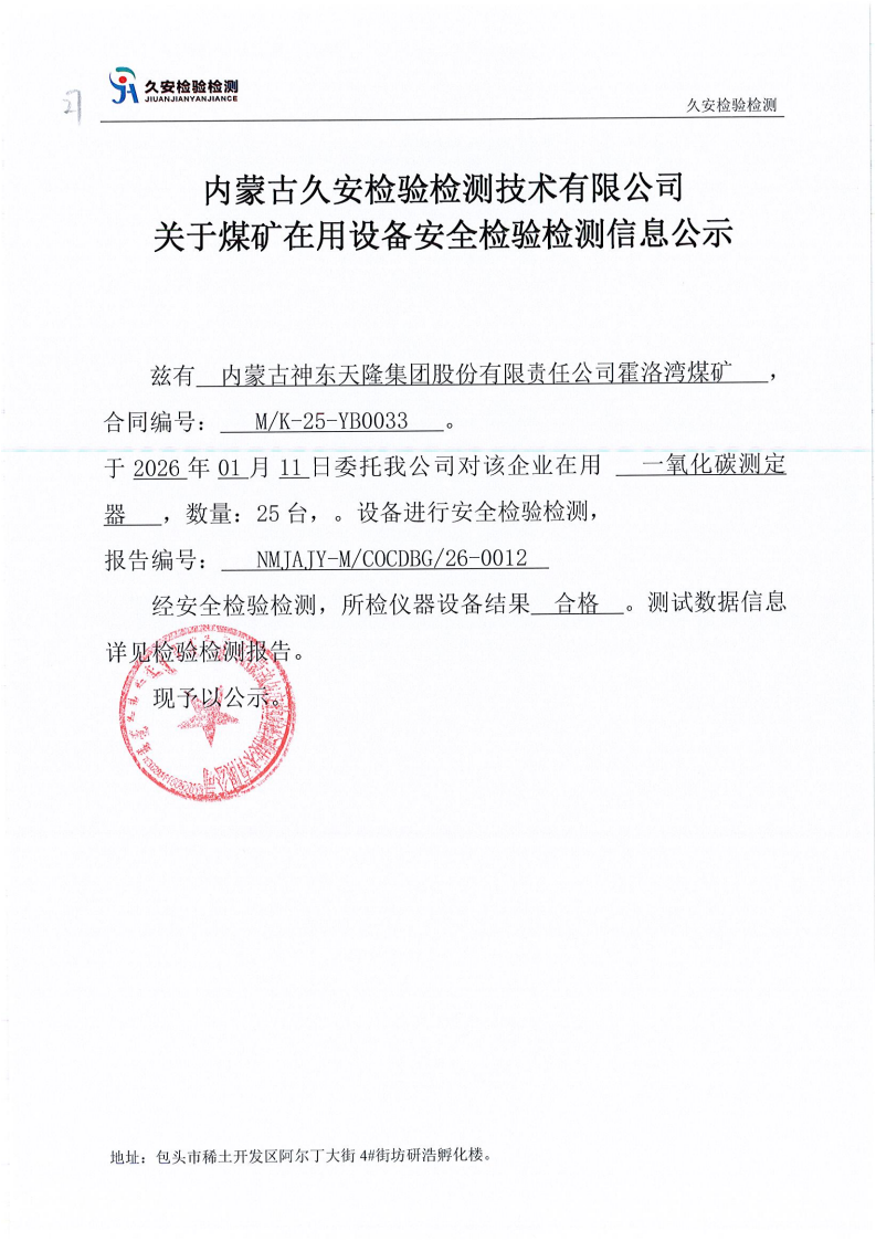 27.内蒙古神东天隆集团股份有限公司霍洛湾煤矿在用设备安全检验检测信息公示