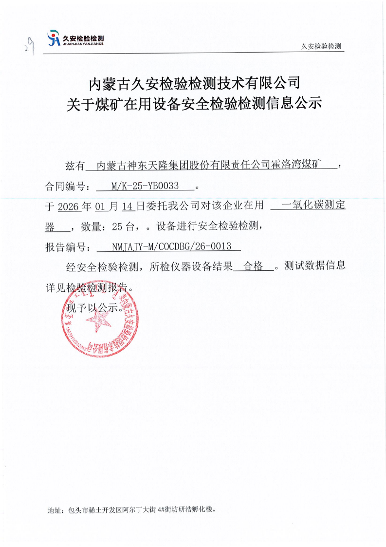 29.内蒙古神东天隆集团股份有限公司霍洛湾煤矿在用设备安全检验检测信息公示