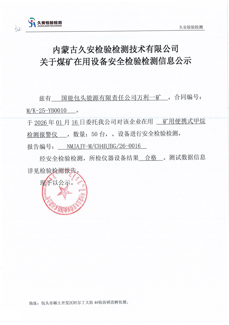 32.国能包头能源有限责任公司万利一矿煤矿在用设备安全检验检测信息公示