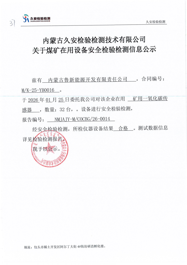 37.内蒙古鲁新能源开发有限责任公司煤矿在用设备安全检验检测信息公示