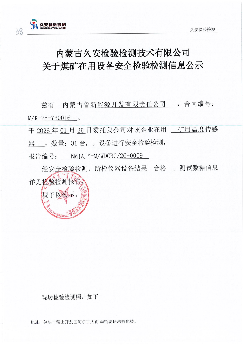 38.内蒙古鲁新能源开发有限责任公司煤矿在用设备安全检验检测信息公示