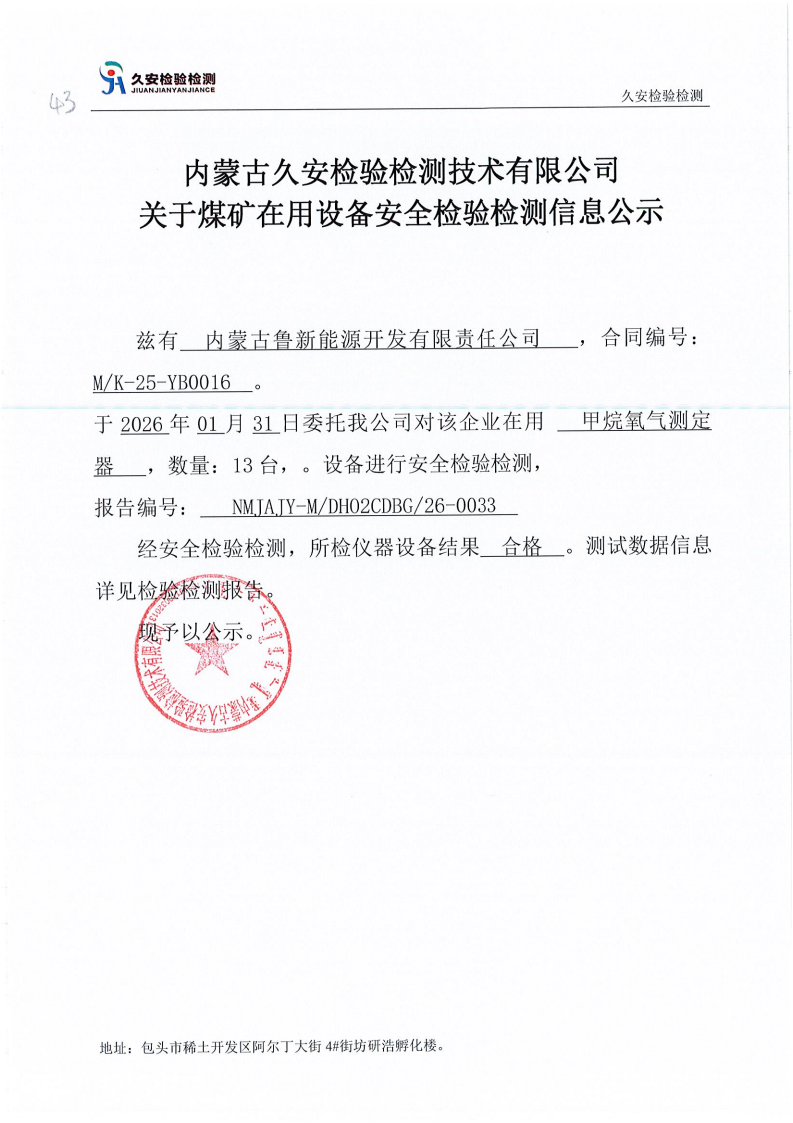 43.内蒙古鲁新能源开发有限责任公司煤矿在用设备安全检验检测信息公示