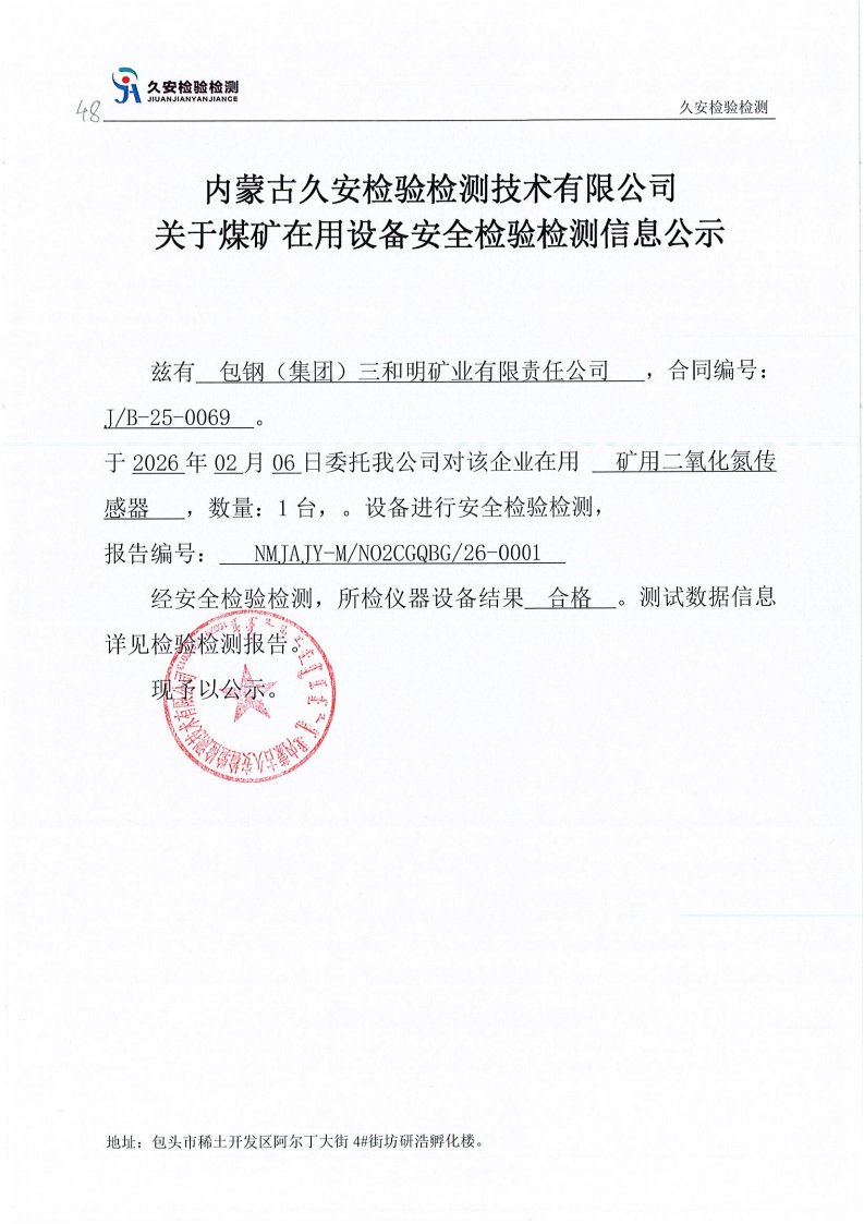 48.包钢(集团)三和明矿业有限责任公司煤矿在用设备安全检验检测信息公示