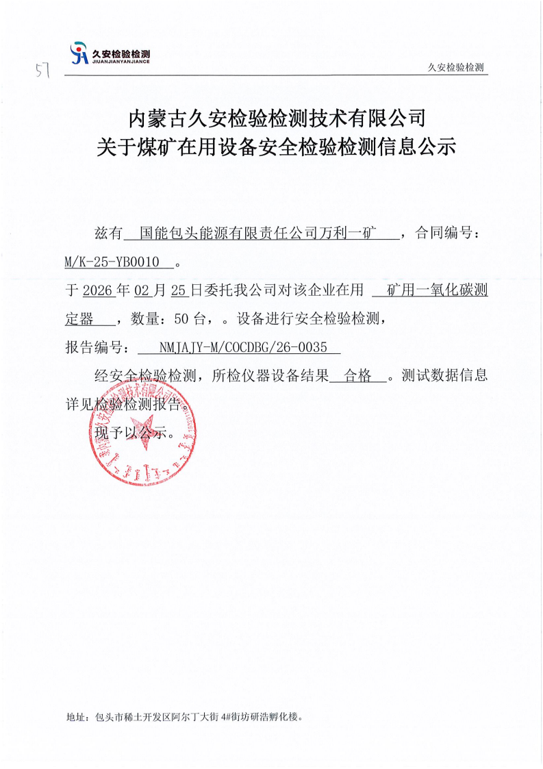 57.国能包头能源有限责任公司万利一矿煤矿在用设备安全检验检测信息公示