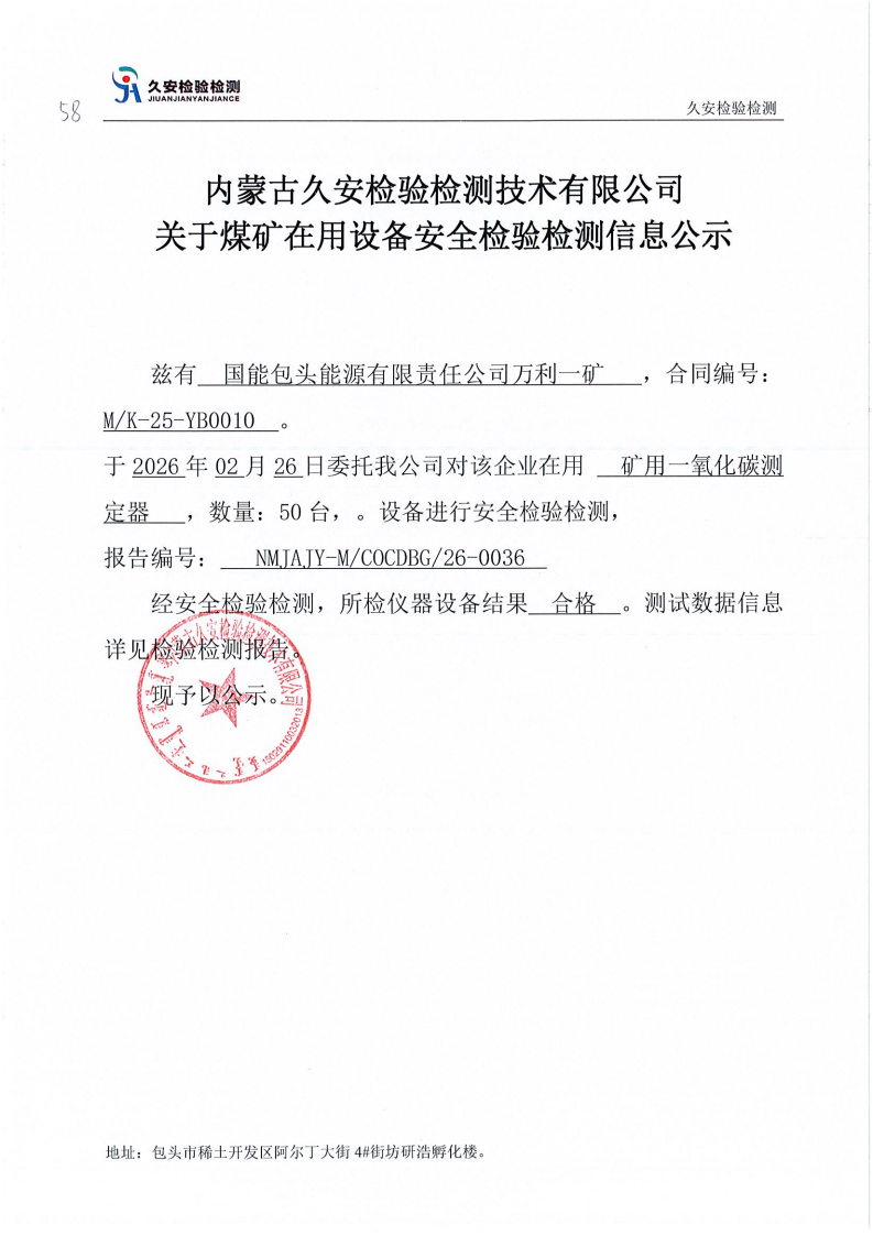 58.国能包头能源有限责任公司万利一矿煤矿在用设备安全检验检测信息公示