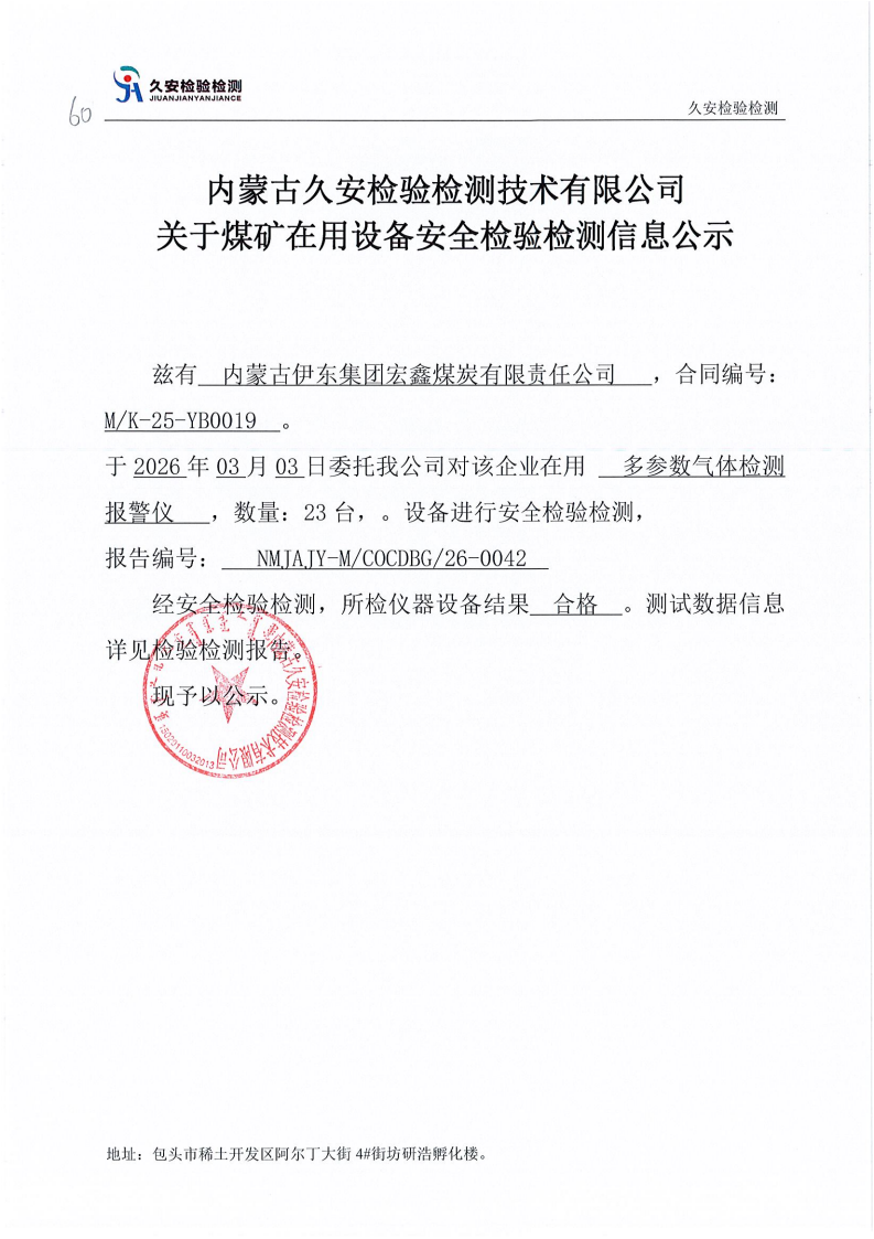 60.内蒙古伊东集团宏鑫煤炭有限责任公司煤矿在用设备安全检验检测信息公示