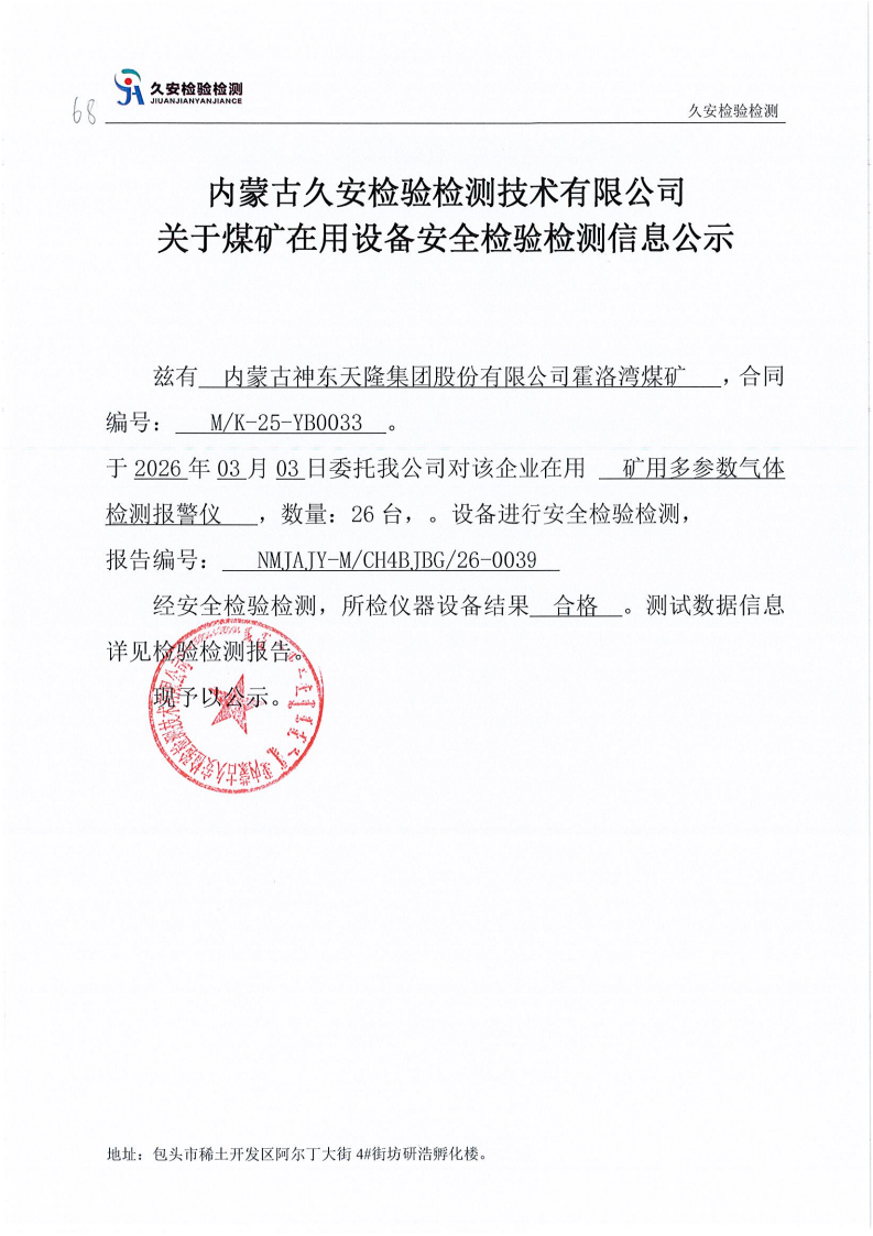 68.内蒙古神东天隆集团股份有限公司霍洛湾煤矿在用设备安全检验检测信息公示