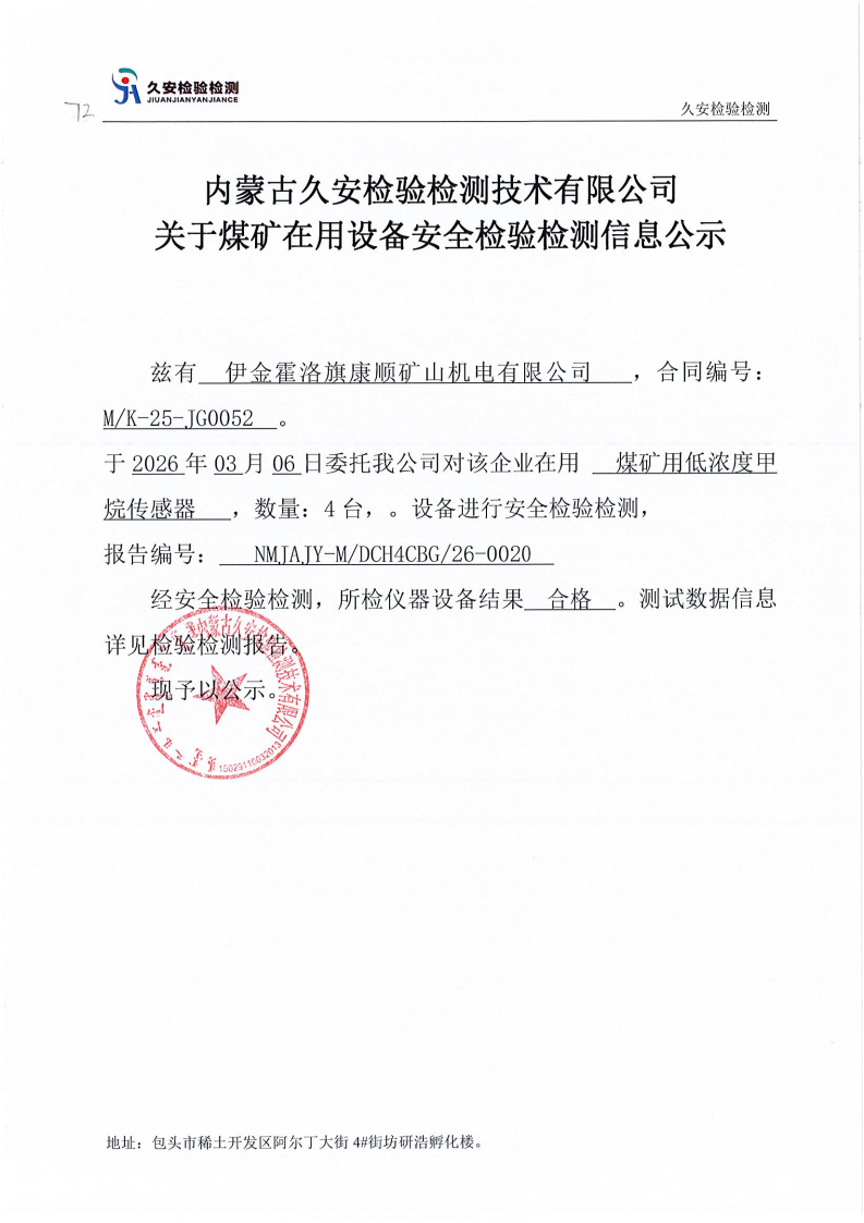 72.伊金霍洛旗康顺矿山机电有限公司煤矿在用设备安全检验检测信息公示