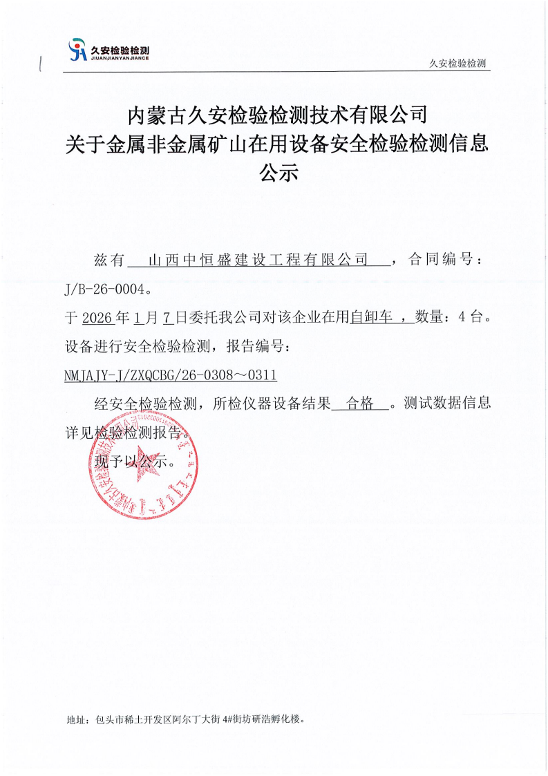 1.山西中恒盛建设工程有限公司金属非金属矿山在用设备安全检验检测信息公示