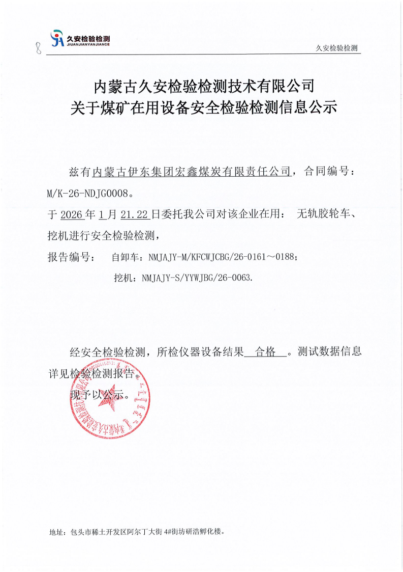 8.内蒙古伊东集团宏鑫煤炭有限责任公司煤矿在用设备安全检验检测信息公示