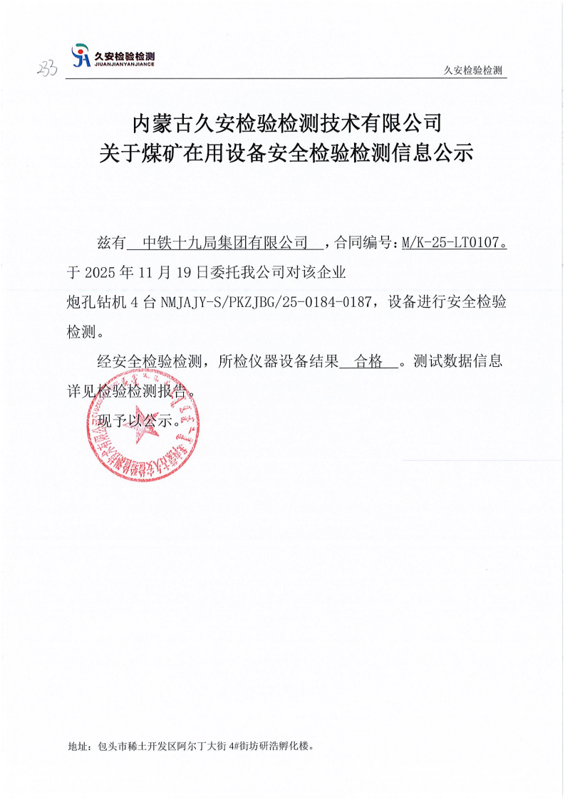 233.中铁十九局集团有限公司煤矿在用设备安全检验检测信息公示