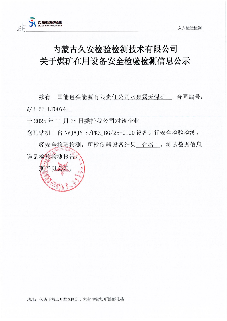 235.国能包头能源有限责任公司水泉露天煤矿在用设备安全检验检测信息公示