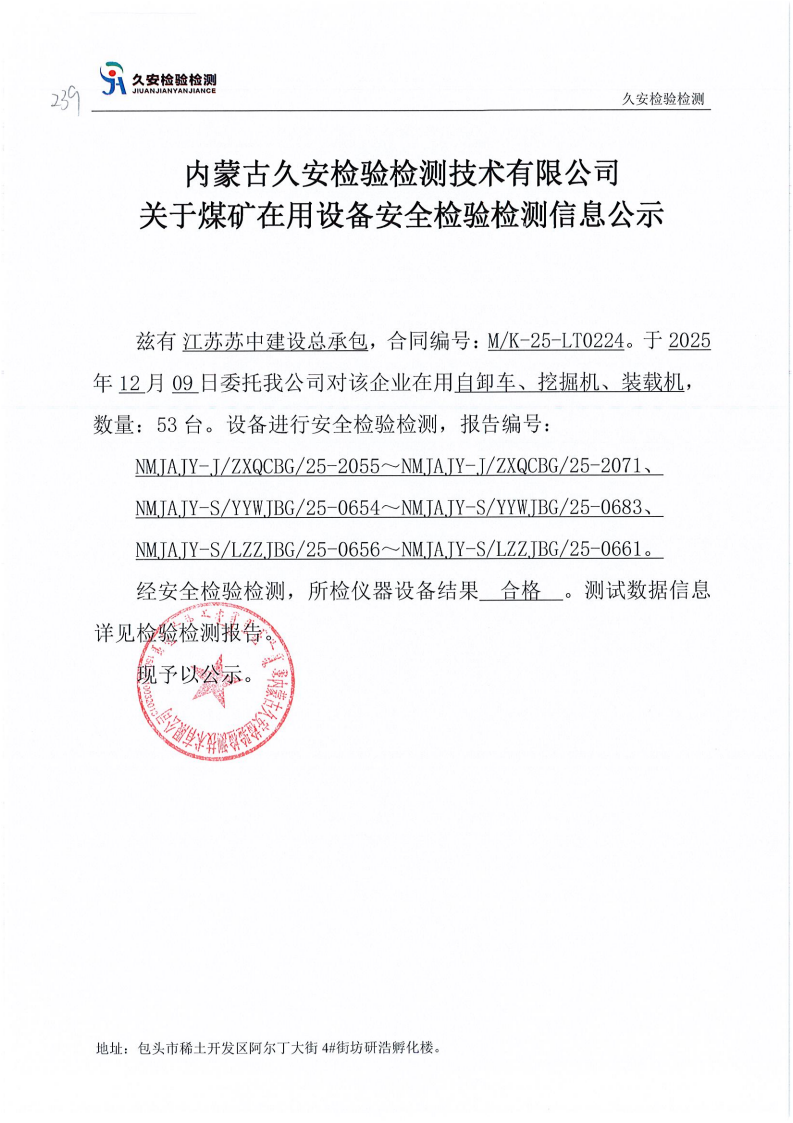 239.江苏苏中建设总承包煤矿在用设备安全检验检测信息公示