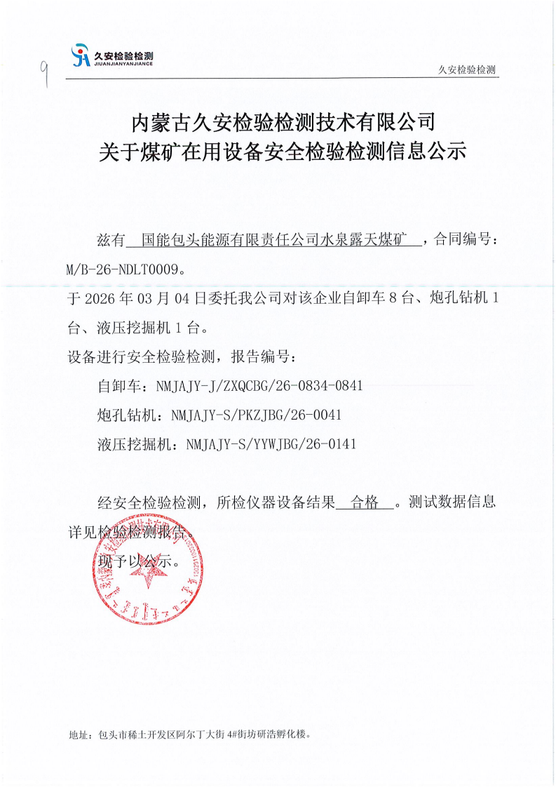 9.国能包头能源有限责任公司水泉露天煤矿在用设备安全检验检测信息公示