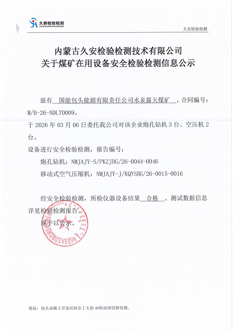 11.国能包头能源有限责任公司水泉露天煤矿在用设备安全检验检测信息公示