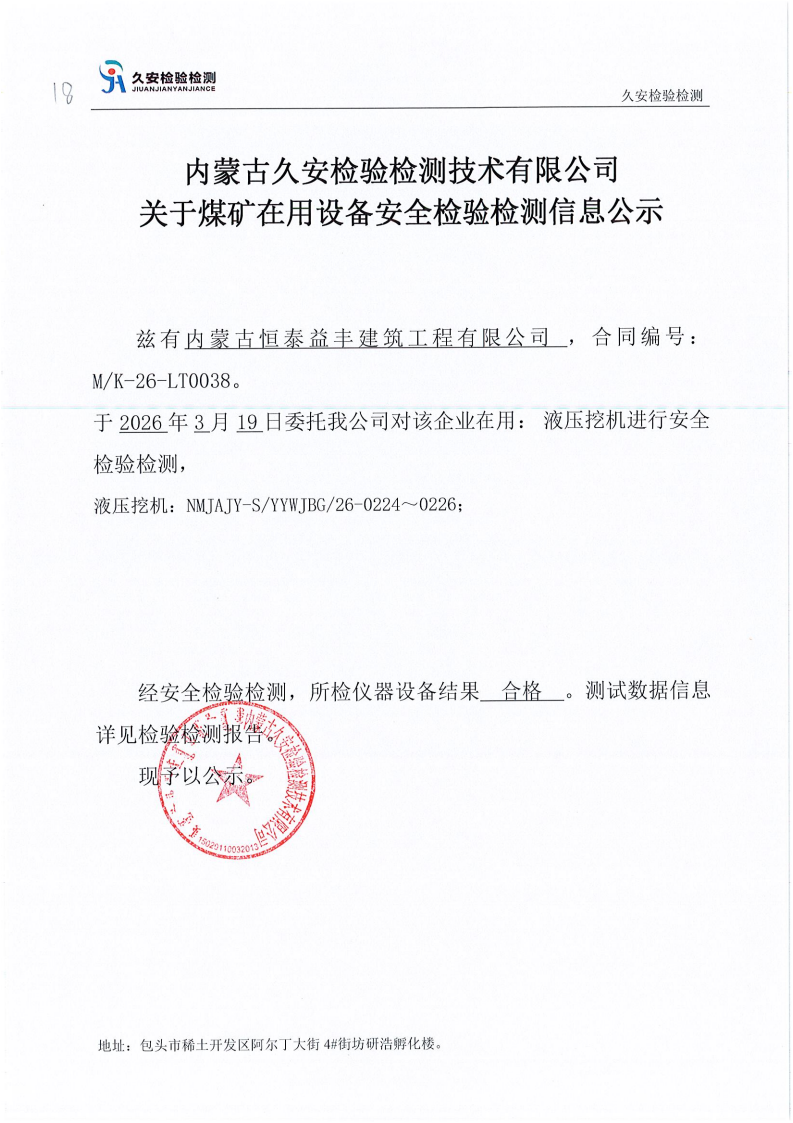 18.内蒙古恒泰益丰建筑工程有限公司煤矿在用设备安全检验检测信息公示