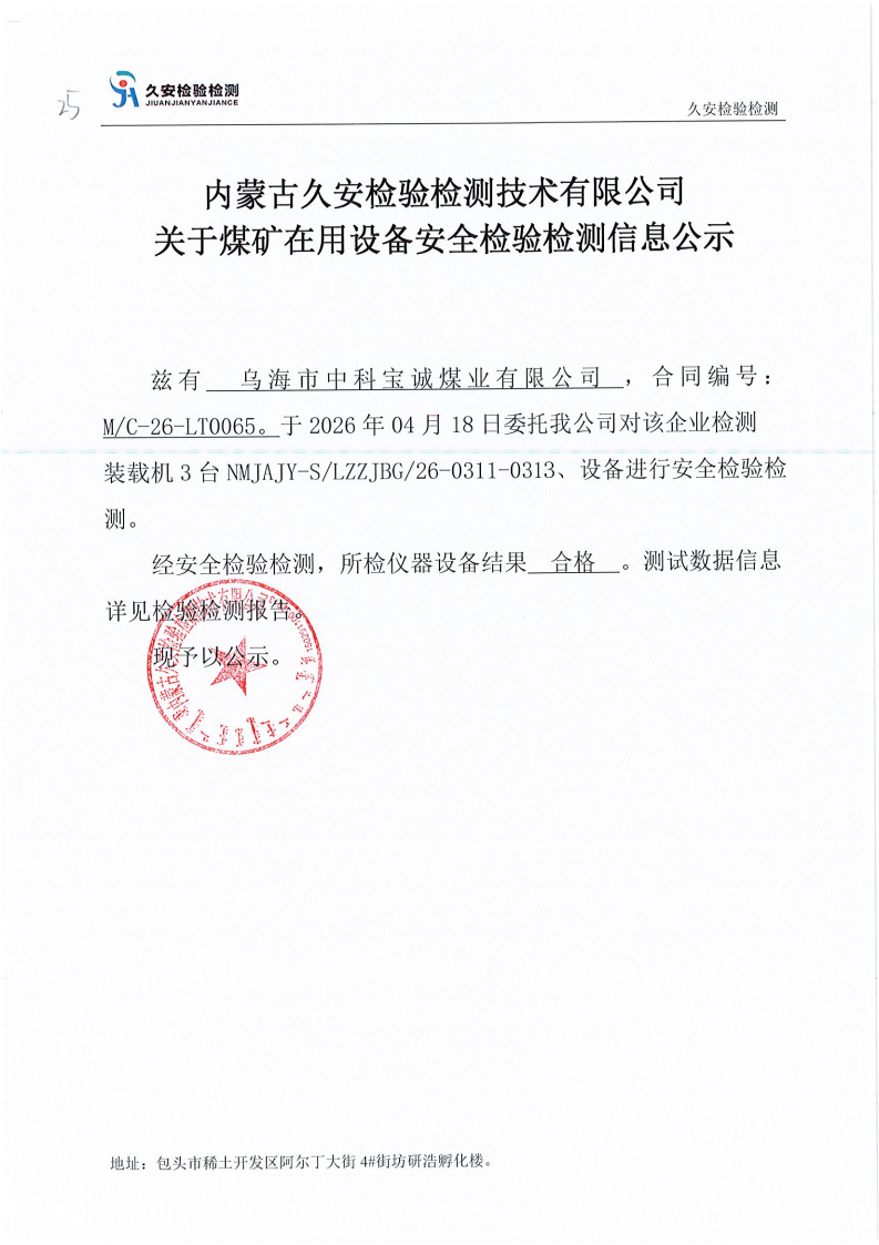 25.乌海市中科宝诚煤业有限公司煤矿在用设备安全检验检测信息公示