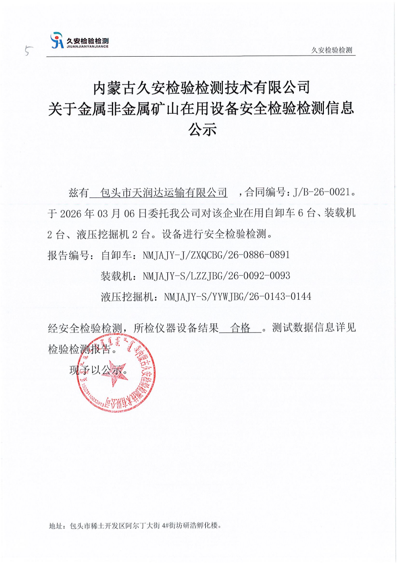 5.包头市天润达运输有限公司金属非金属矿山在用设备安全检验检测信息公示