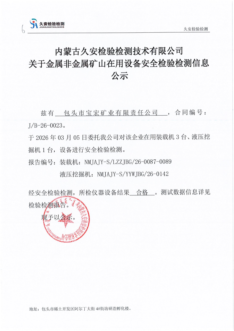 6.包头市宝宏矿业有限责任公司金属非金属矿山在用设备安全检验检测信息公示