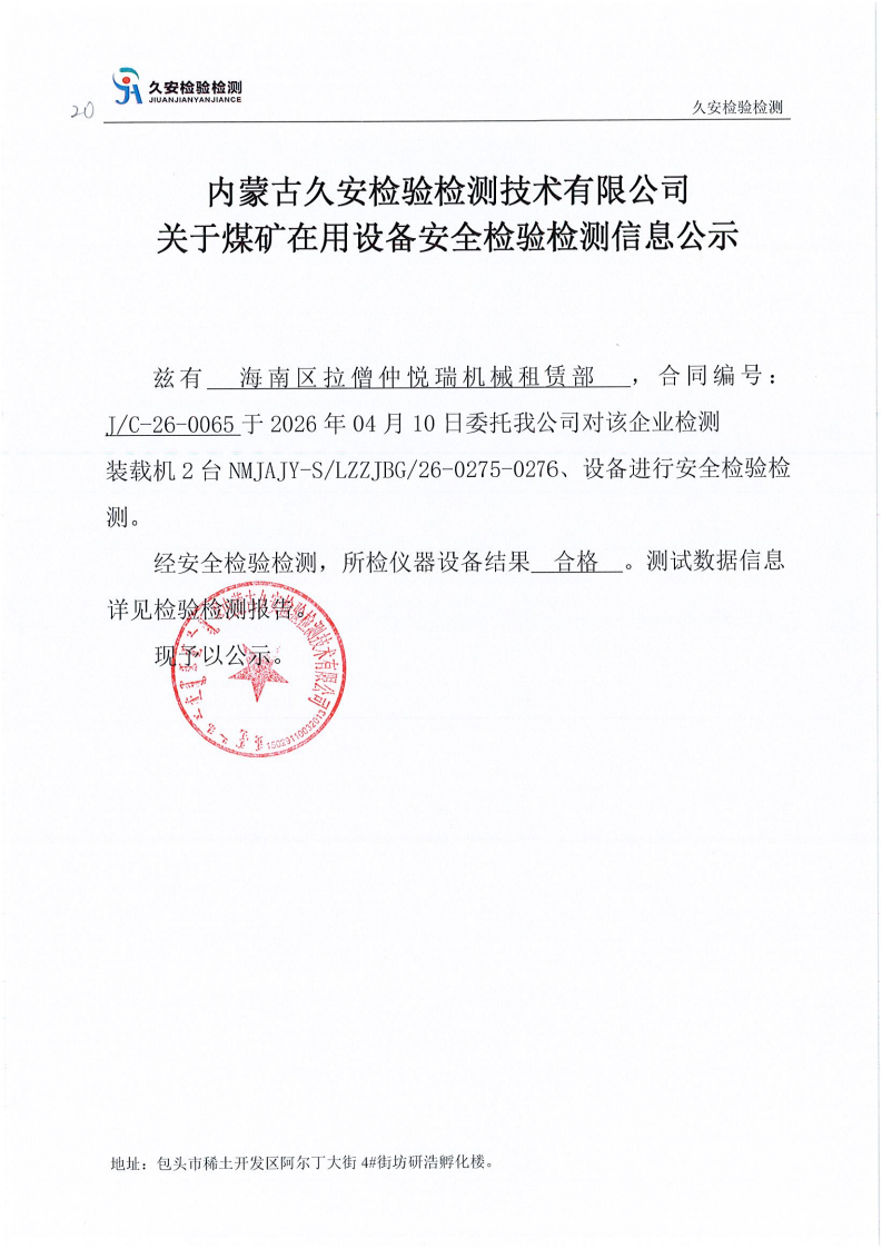20.海南区拉僧仲悦瑞机械租赁部金属非金属矿山在用设备安全检验检测信息公示