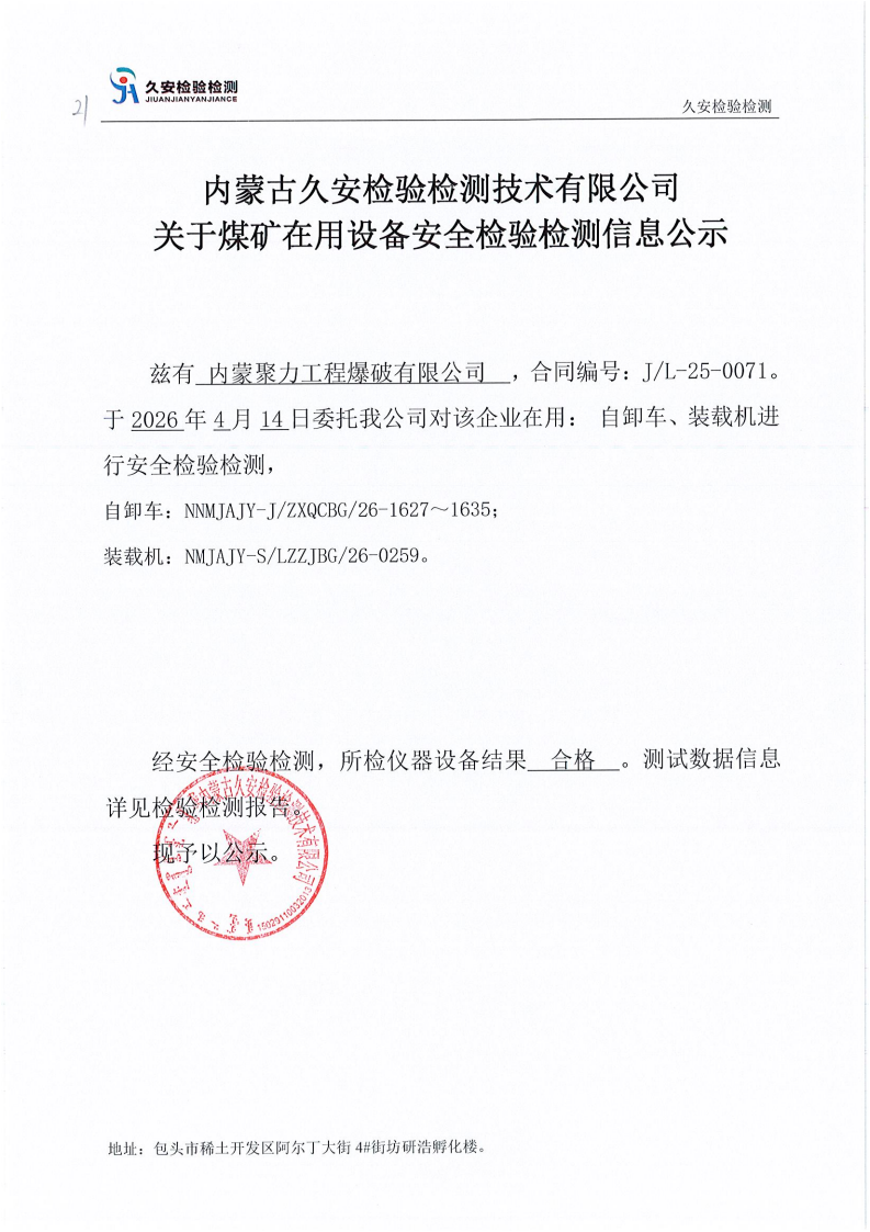 21.内蒙聚力工程爆破有限公司金属非金属矿山在用设备安全检验检测信息公示