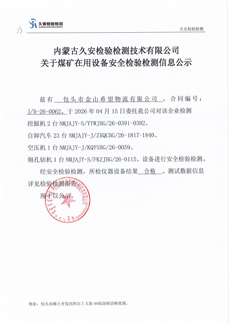 23.包头市金山希望物流有限公司金属非金属矿山在用设备安全检验检测信息公示