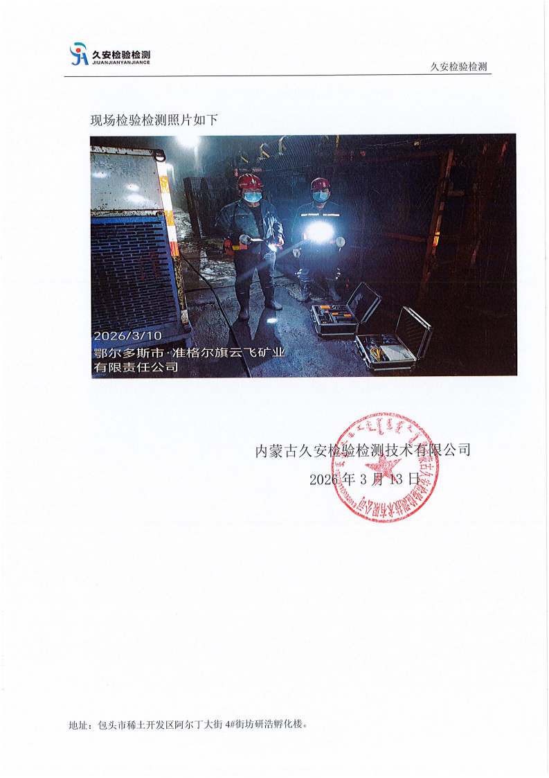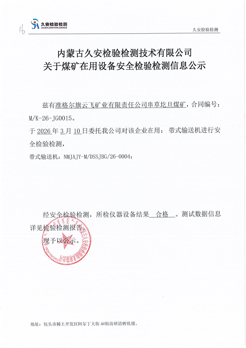 16.准格尔旗云飞矿业有限责任公司串草圪旦煤矿在用设备安全检验检测信息公示