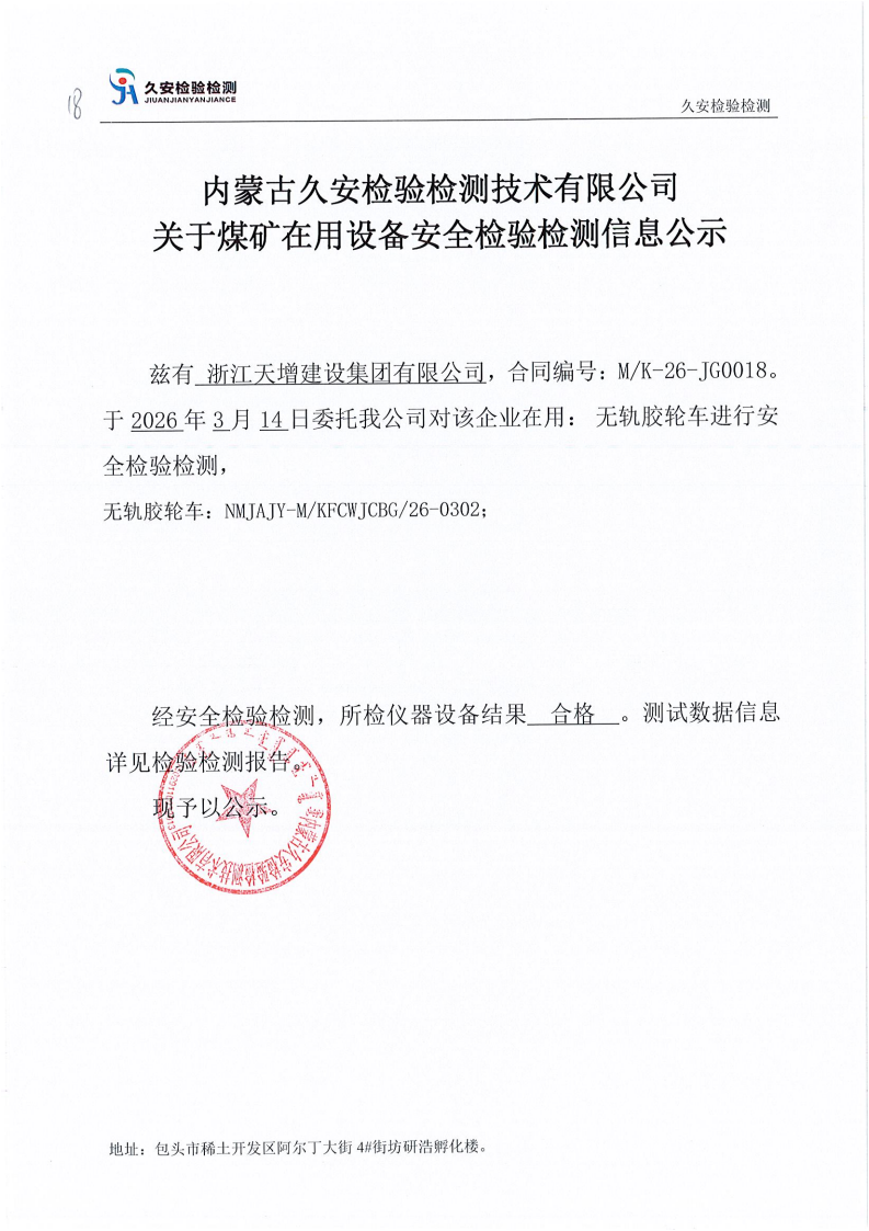 18.浙江天增建设集团有限公司煤矿在用设备安全检验检测信息公示