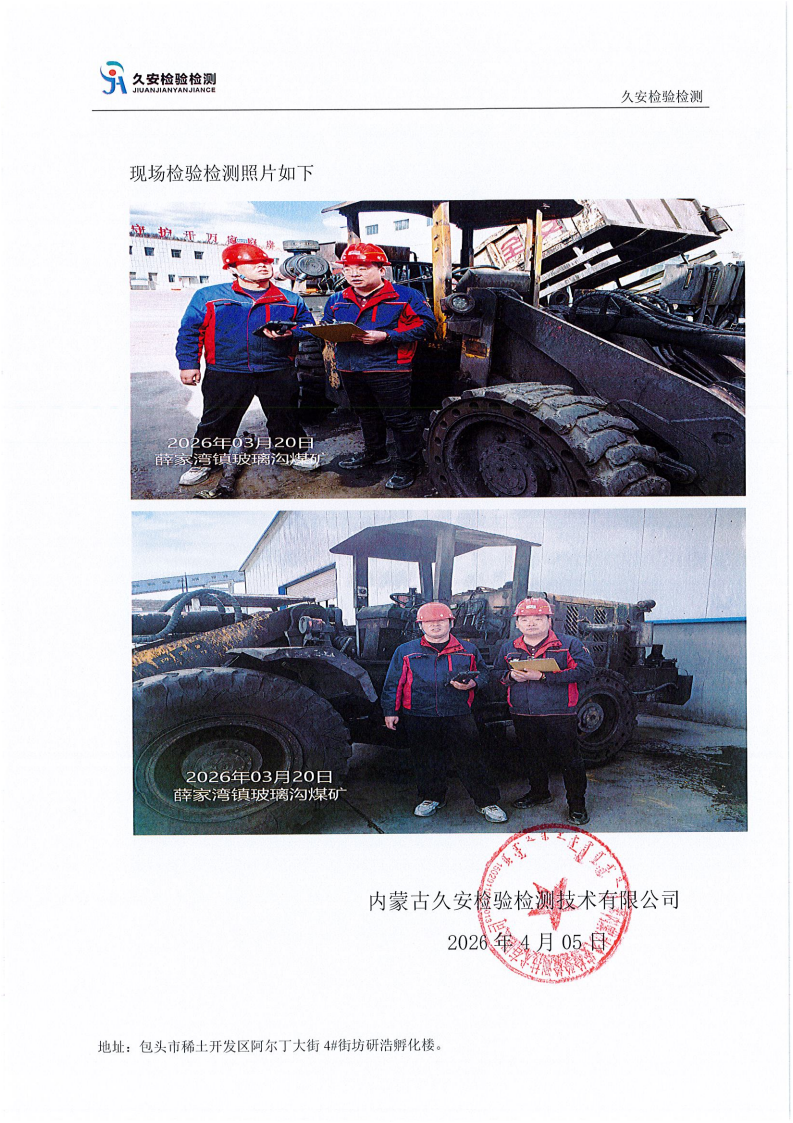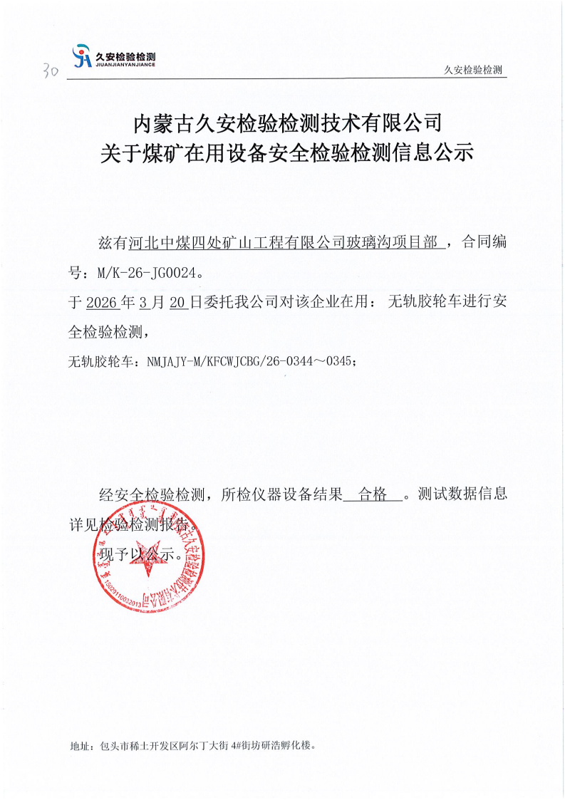 30.河北中煤四处矿山工程有限公司玻璃沟项目部煤矿在用设备安全检验检测信息公示
