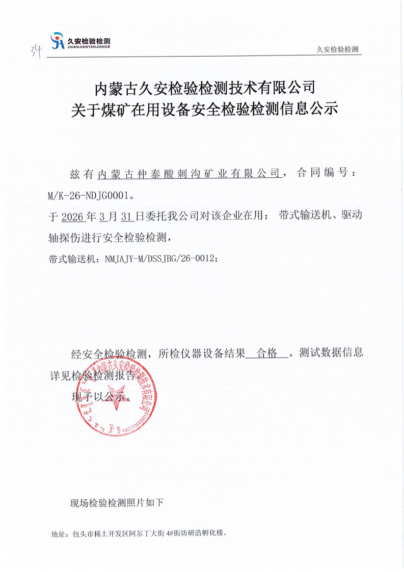 34.内蒙古仲泰酸刺沟矿业有限公司煤矿在用设备安全检验检测信息公示