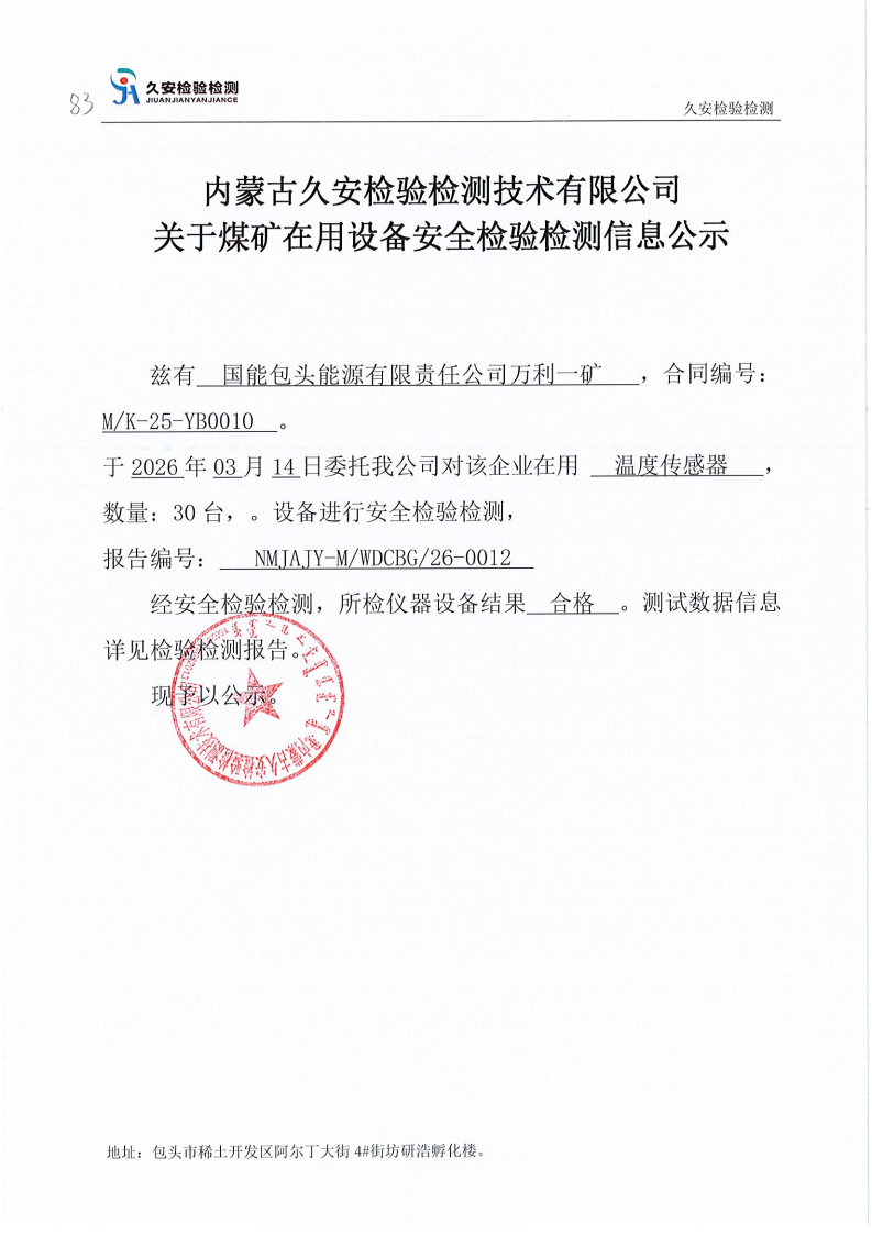 83.国能包头能源有限责任公司万利一矿煤矿在用设备安全检验检测信息公示