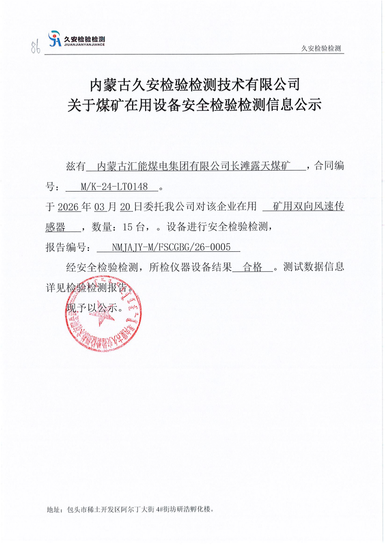 86.内蒙古汇能煤电集团有限公司长滩露天煤矿在用设备安全检验检测信息公示
