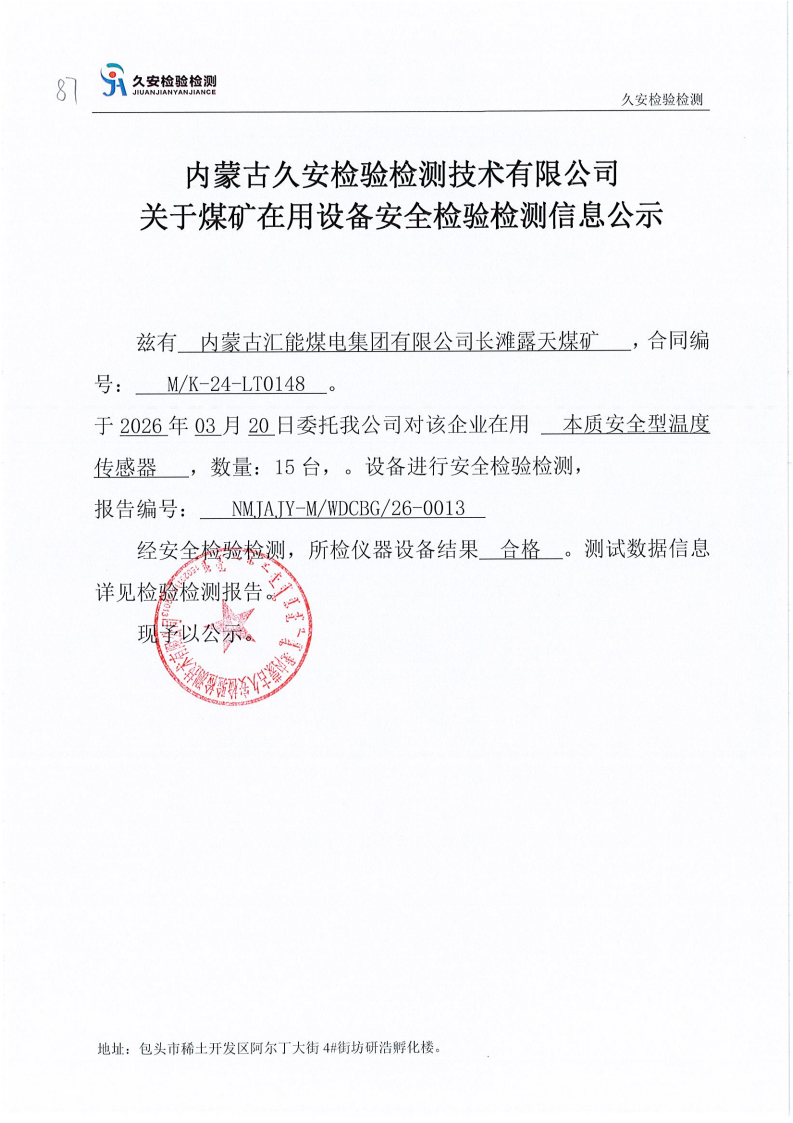 87.内蒙古汇能煤电集团有限公司长滩露天煤矿在用设备安全检验检测信息公示