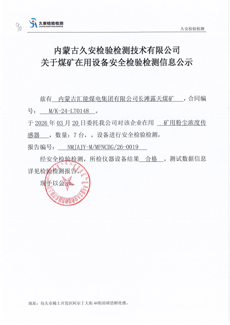 90.内蒙古汇能煤电集团有限公司长滩露天煤矿在用设备安全检验检测信息公示