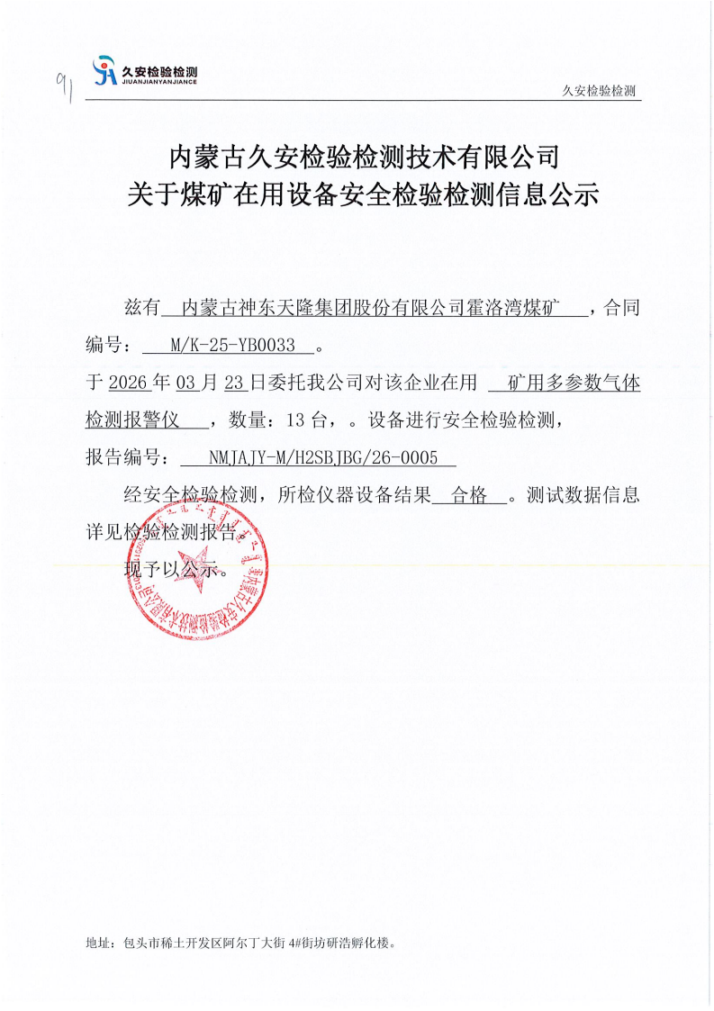 91.内蒙古神东天隆集团股份有限公司霍洛湾煤矿在用设备安全检验检测信息公示