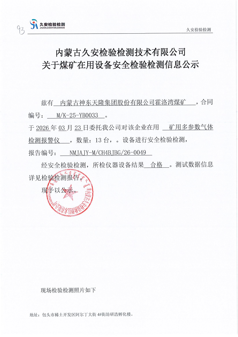 93.内蒙古神东天隆集团股份有限公司霍洛湾煤矿在用设备安全检验检测信息公示