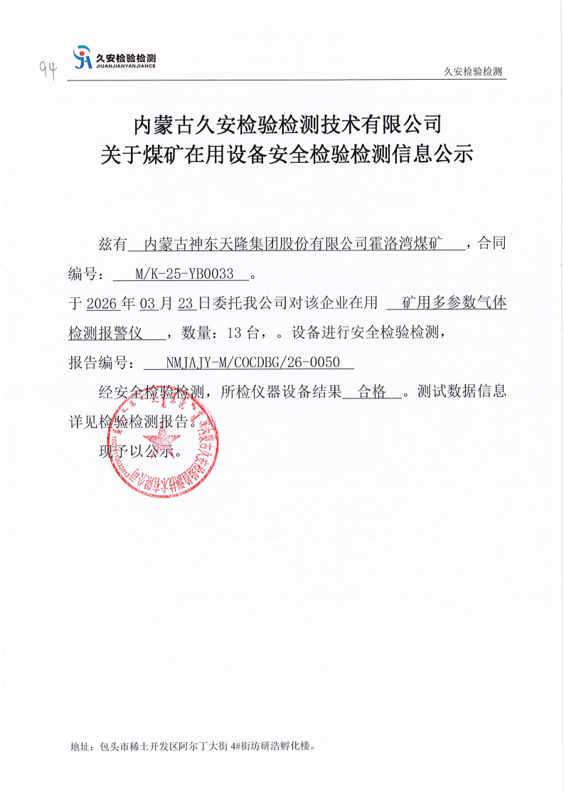 94.内蒙古神东天隆集团股份有限公司霍洛湾煤矿在用设备安全检验检测信息公示
